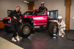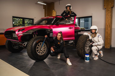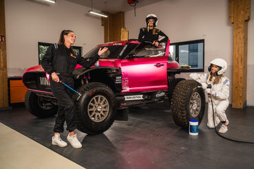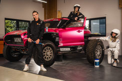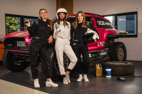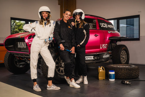 Eine Location, der MINI X-RAID und drei Models. Geschwindigkeit und Stil vereint in jedem Bild – Ausdruck echter Partnerschaft und Markenenergie.